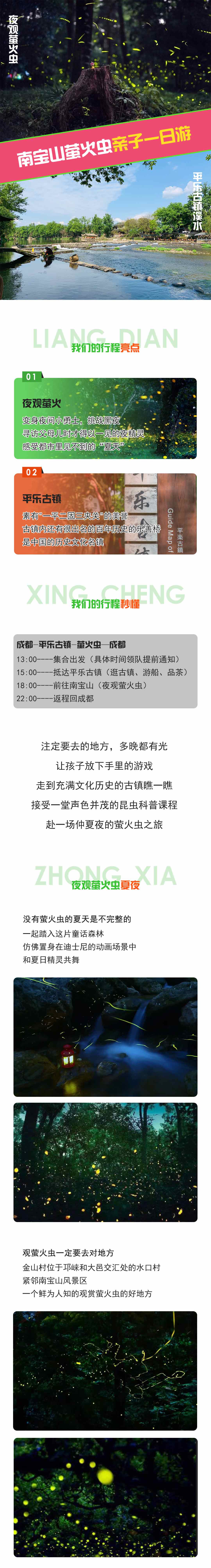 亲子游不只属于孩子,这也是一个培养亲子间情感的过程。放下家长的身份与负担,站在孩子的角度看世界,让自己再过一次童年,只有感同身受,才能更好的与孩子心灵相通。 [产品性质]本产品为亲子游,儿童需家长陪同参加。大小同价 [成团须知]15-30人成团 [行程亮点]夜观萤火虫,游玩文化古镇 [集合解散]成都出发,成都散团 [特别告知]本产品属于亲子游产品,真纯玩无购物。