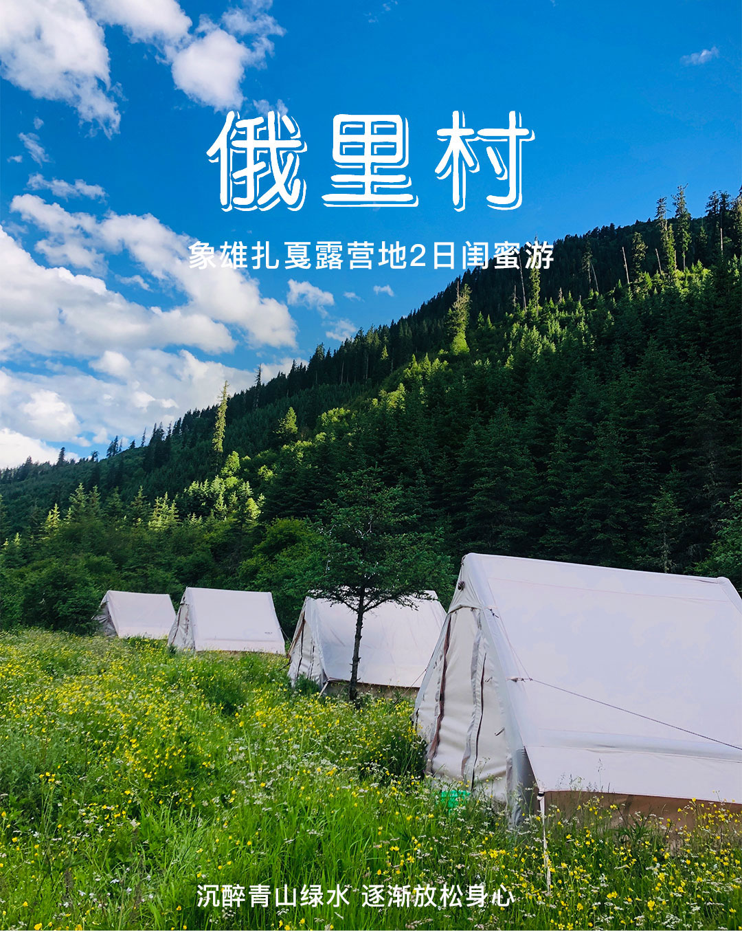持续的高温热浪令人窒息,寻找夏日里的清凉避暑目的地就显得尤为重要。 俄里村,一个绝佳的露营避暑圣地,藏在松潘的小众秘境! 这里的花已开成海,草木成荫,在这里露营扎寨,拍照游玩,简直不要太惬意! 旅行主题:闺蜜游主题; 景观亮点:户外徒步,星空露营,特色美食,篝火晚会,骑马旅拍; 参团客群:中青年旅游爱好者; 团队人数:4人起成团,低于4人此团自动解散,所支付费用自动返回原账户; 集合解散:成都出发,成都散团; 特别告知:本产品全程纯玩无购物; 支付方式:在线支付+团上现付,详情请查看“费用包含”栏。