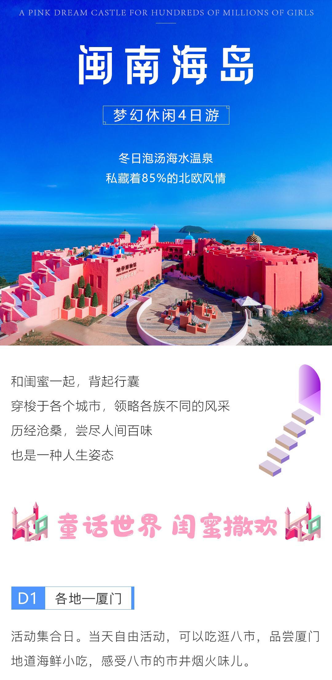 闽南海岛梦幻休闲4日游——亿万少女的粉红梦幻城堡